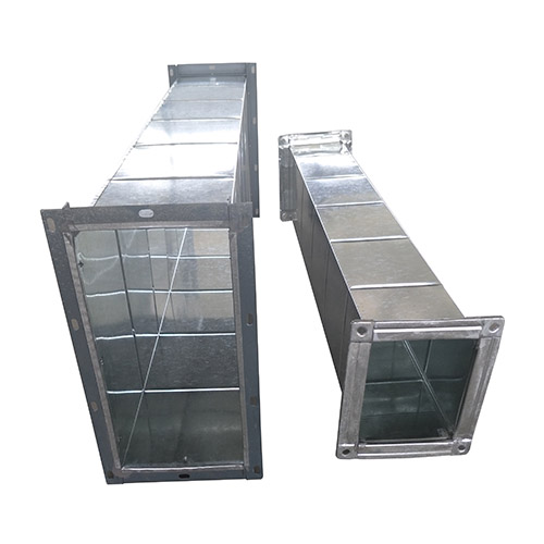共板法蘭主要由角碼、法蘭夾,及與風管一體相連的法蘭連接,這種形式風管雖然造價較低(減少了角鋼用量,減少了制作角鋼法蘭的人工用量),但是實際應用起來不如角鋼法蘭牢固,且必須通過機床進行加工,手工制作幾乎不能實現它的制作,通常只應用于新風系統,空調系統等,排煙系統還是經常用角鋼法蘭連接的風管。但是人防工程是不允許用共板法蘭連接。